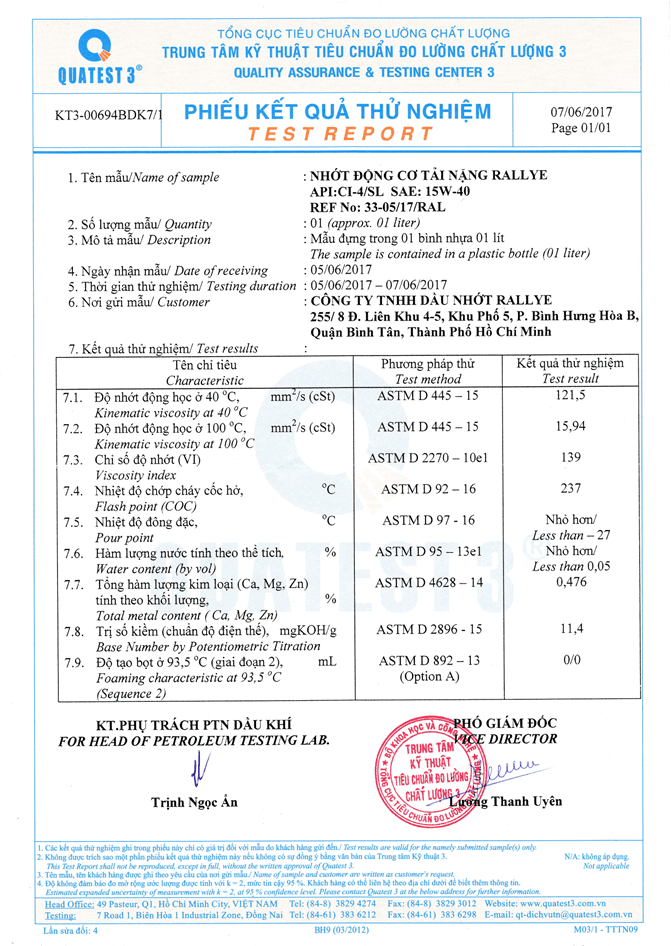 PHIẾU KẾT QUẢ THỬ NGHIỆM