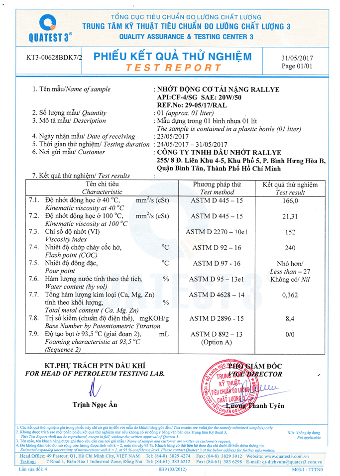 PHIẾU KẾT QUẢ THỬ NGHIỆM