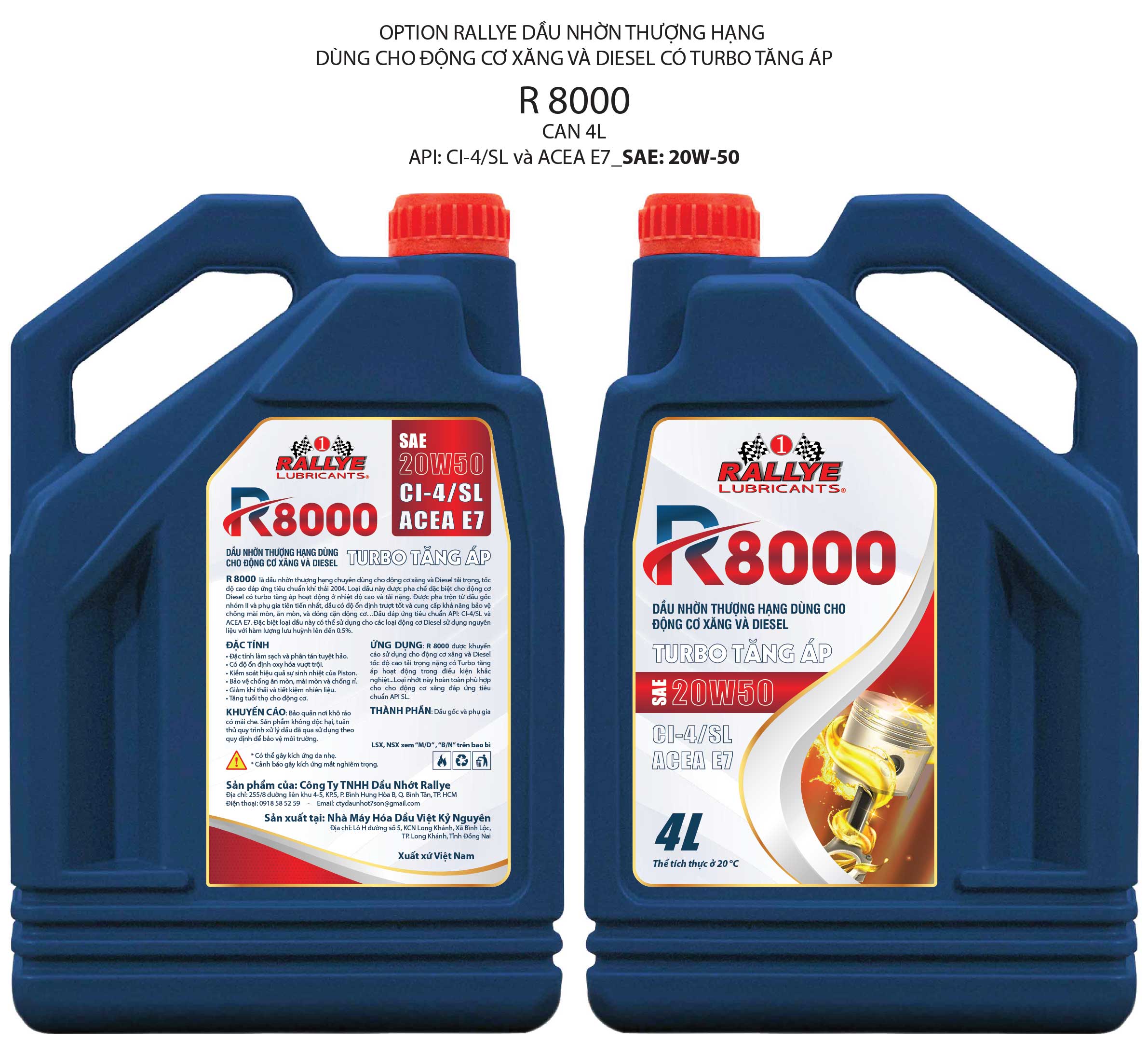 R8000 là dầu nhờn thượng hạng chuyên dùng cho động cơ xăng và Diesel tải trọng, tốc độ cao đáp ứng tiêu chuẩn khí thải 2004. Loại dầu này được pha chế đặc biệt cho động cơ Diesel có turbo tăng áp hoạt động ở nhiệt độ cao và tải nặng. Được pha trộn từ dầu gốc nhóm II và phụ gia tiên tiến nhất, dầu có độ ổn định trượt tốt và cung cấp khả năng bảo vệ chống mài mòn, ăn mòn, và đóng cặn động cơ...Dầu đáp ứng tiêu chuẩn API: CI-4/SL và ACEA E7. Đặc biệt loại dầu này có thể sử dụng cho các loại động cơ Diesel sử dụng nguyên liệu với hàm lượng lưu huỳnh lên đến 0.5%